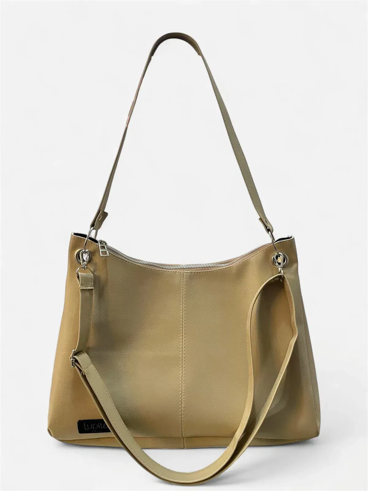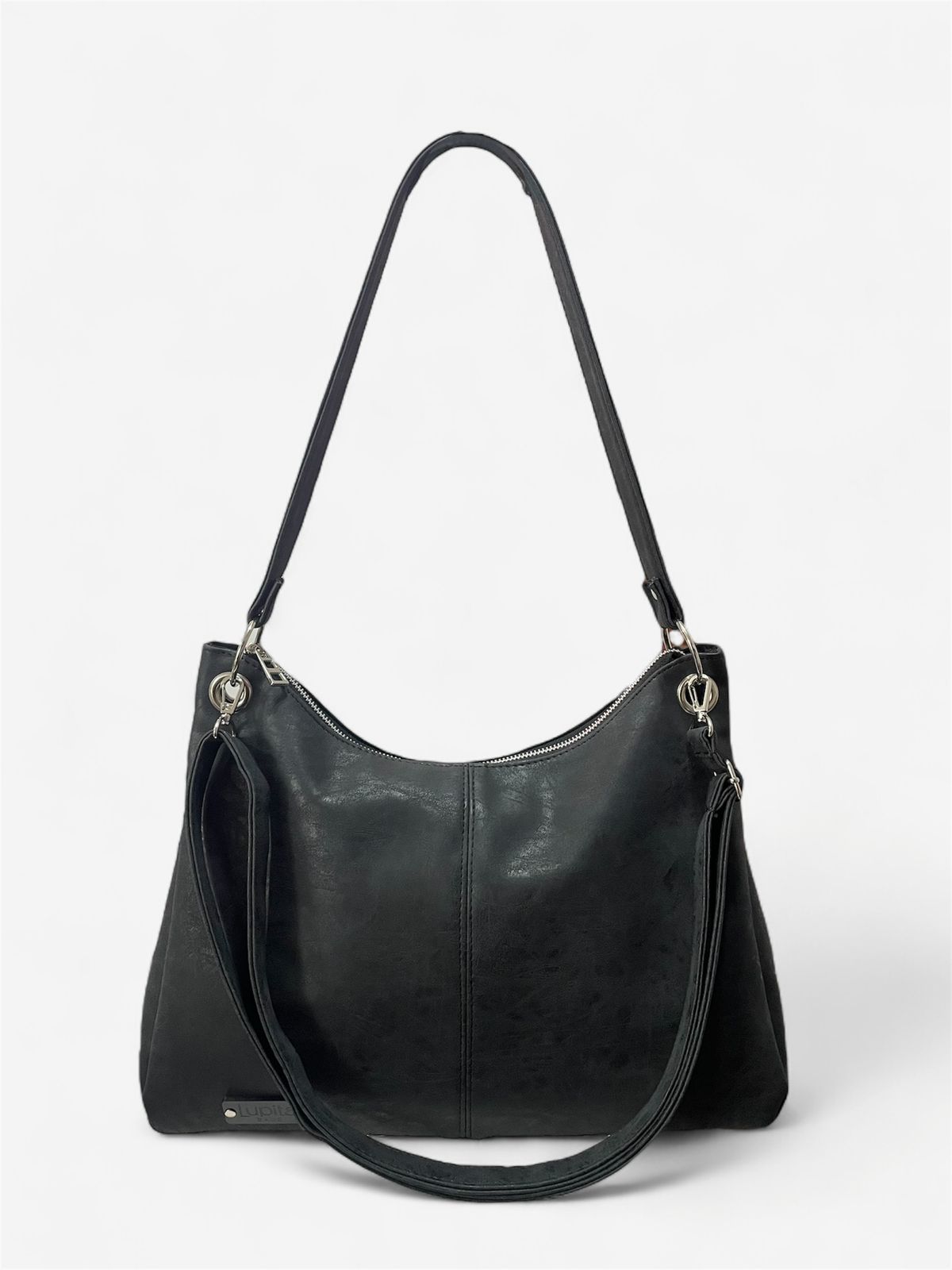 Trae una correa fija para usar al hombro y también una correa larga, regulable y desmontable, perfecta para llevarla cruzada o como más te guste. Medidas: 37cm de ancho, 26cm de alto y 7cm de profundidad.