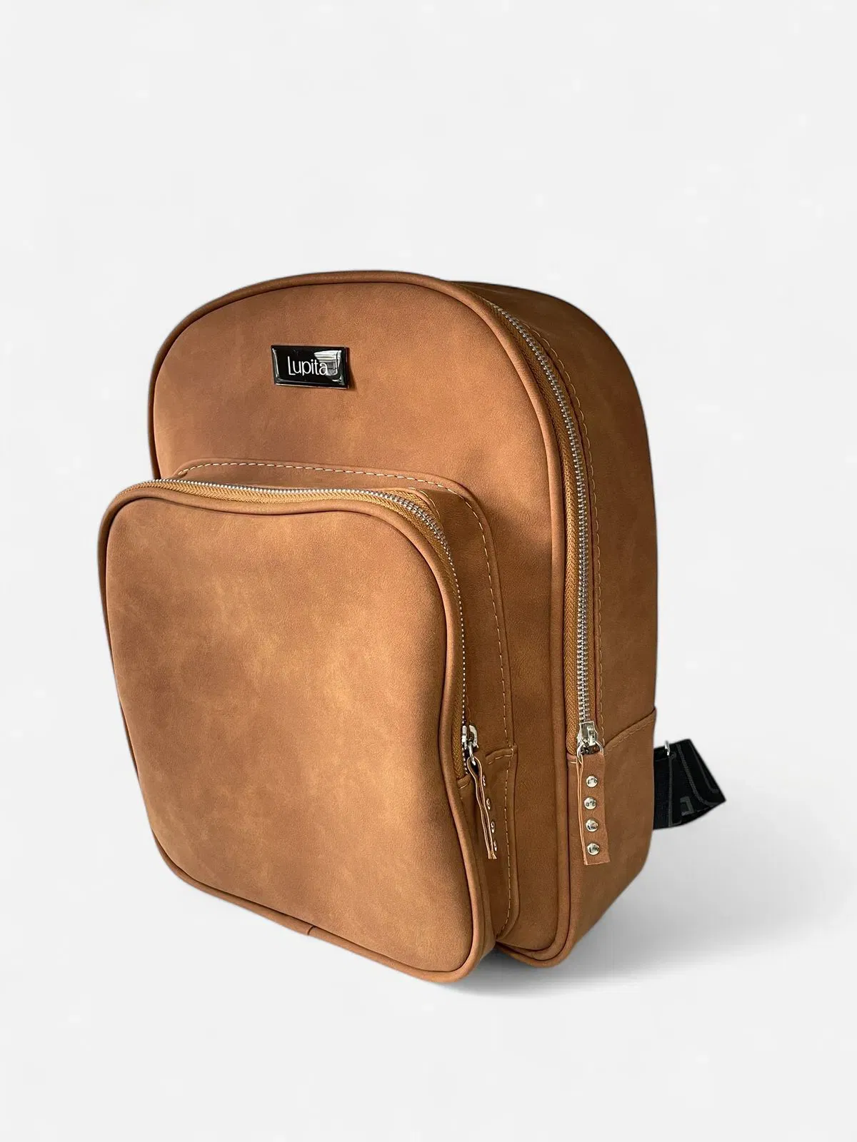 Mochila Agatha: confeccionada en cuero ecologico nobuck, bolsillo frontal externo, bolsillo interior, interior forrado en material impermeable, correas regulables, contrafrente reforzado con polex (le da resistencia y acolchona la espalda). Medidas: 30cm de ancho, 35cm de alto, 10cm de base.