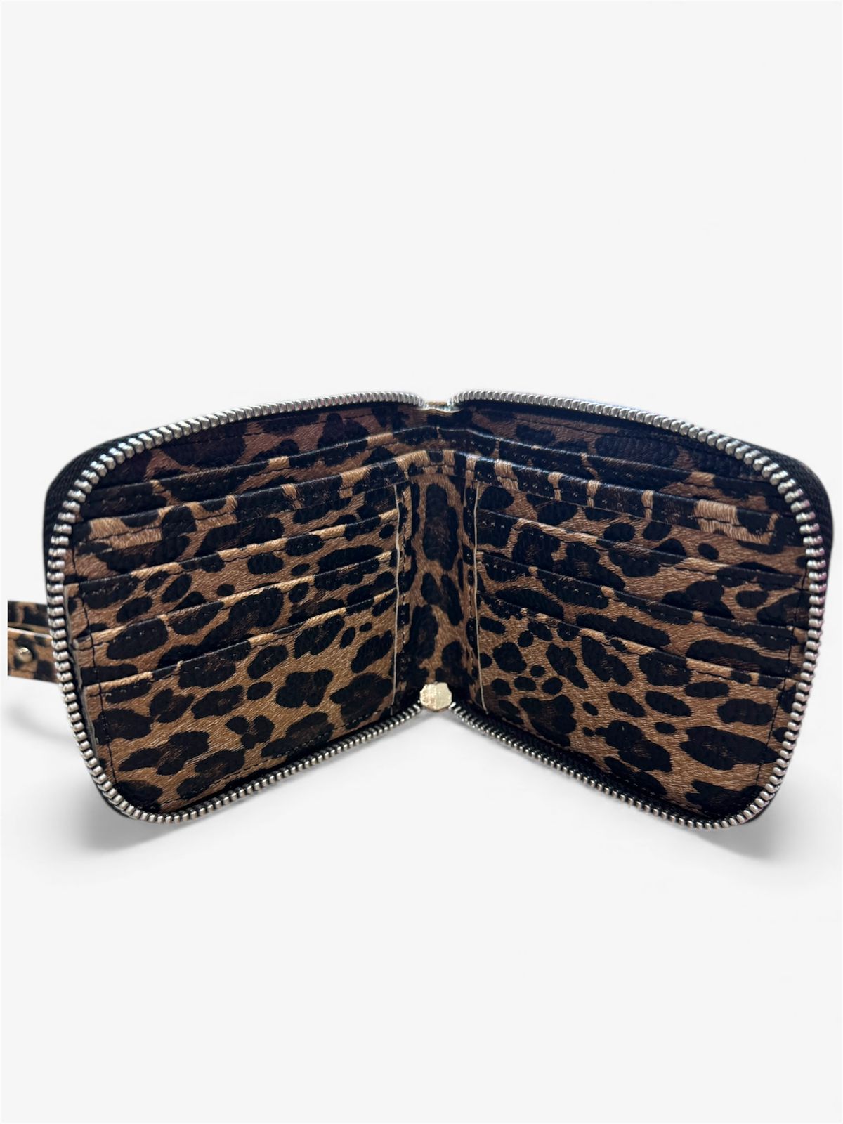 Tiene espacio para 6 tarjetas, 2 solapas para billetes y 2 bolsillos ocultos.