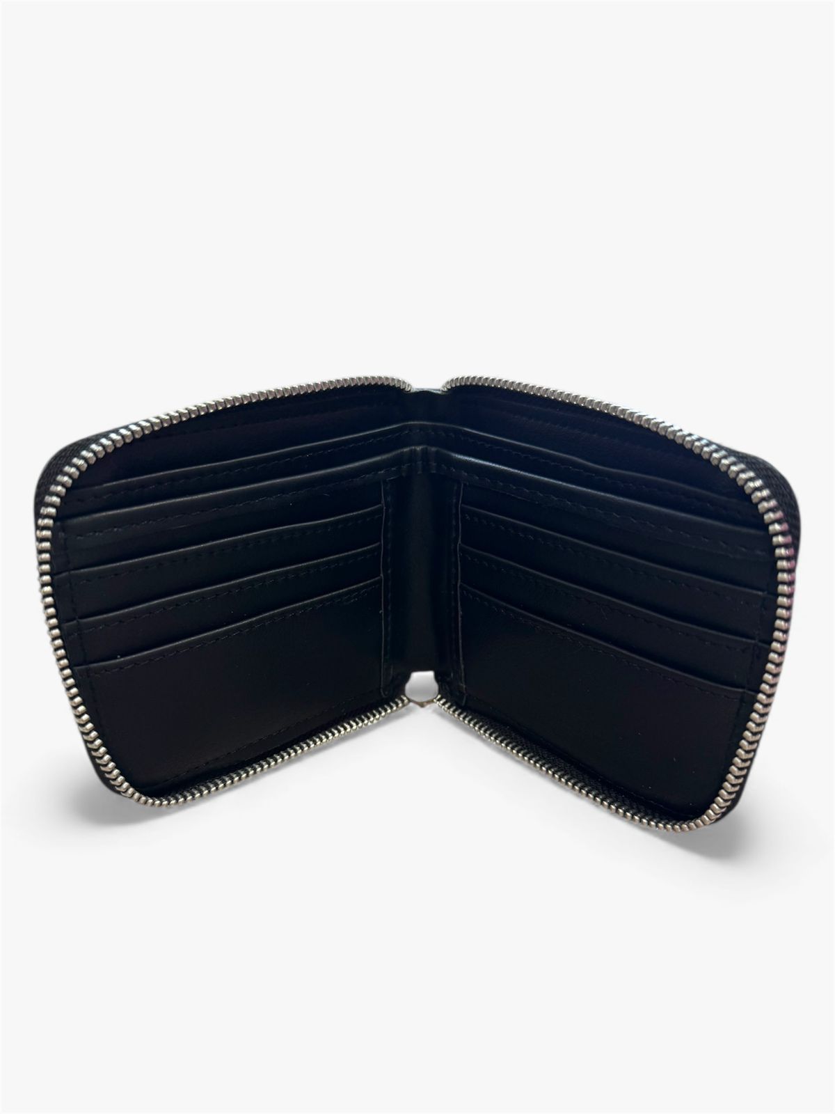 Tiene espacio para 6 tarjetas, 2 solapas para billetes y 2 bolsillos ocultos.