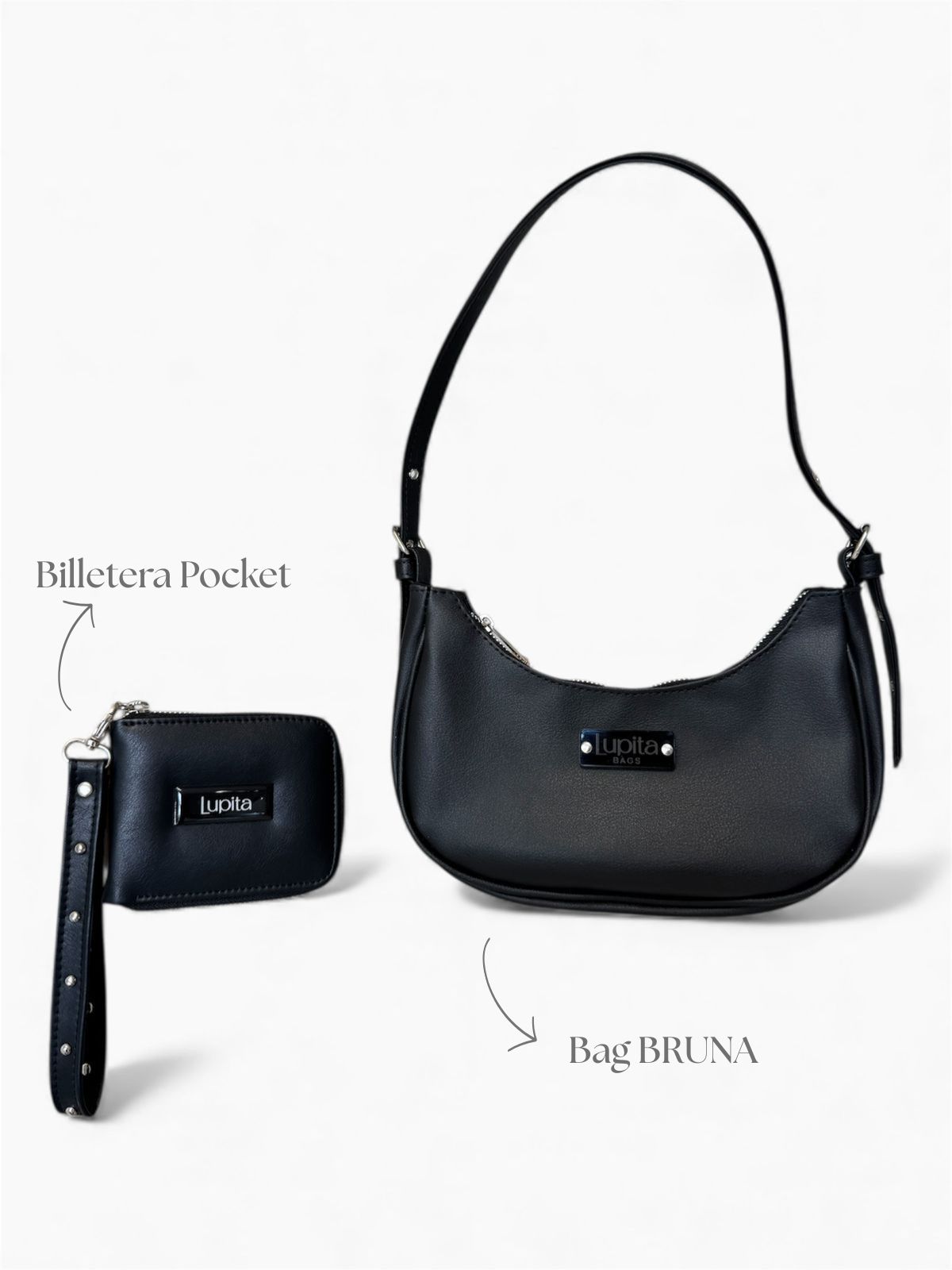 Bag Bruna: confeccionada en cuero ecologico, cuenta con correa regulable a ambos lados mediante hebillas metálicas, lo que te permite ajustarla a tu medida y llevarla cómodamente al hombro. Su interior está completamente forrado e incluye un bolsillo con cierre. Cierre superior para mayor seguridad. Medidas: 24 cm de ancho x 11 cm de alto x 5 cm de profundidad.