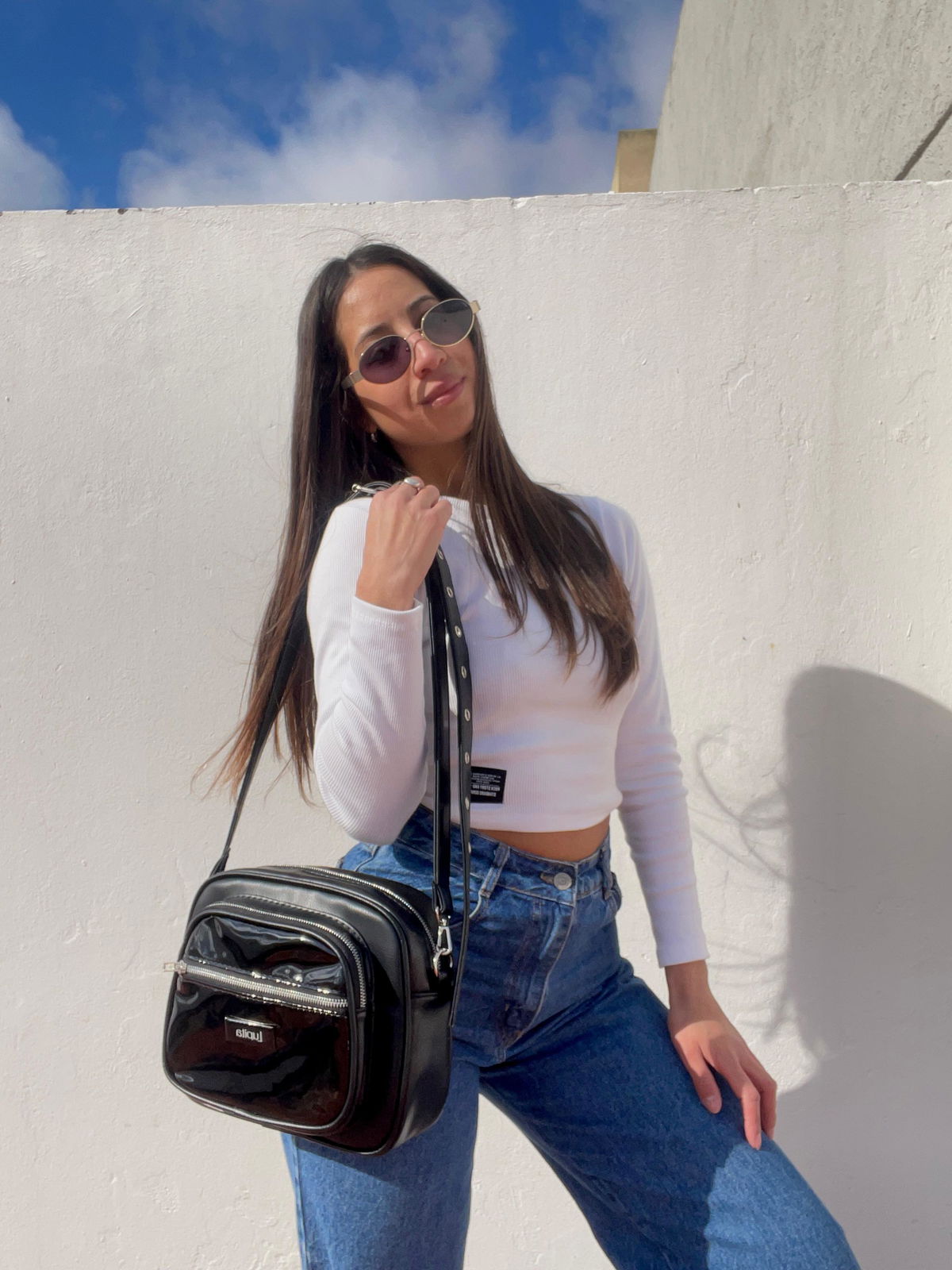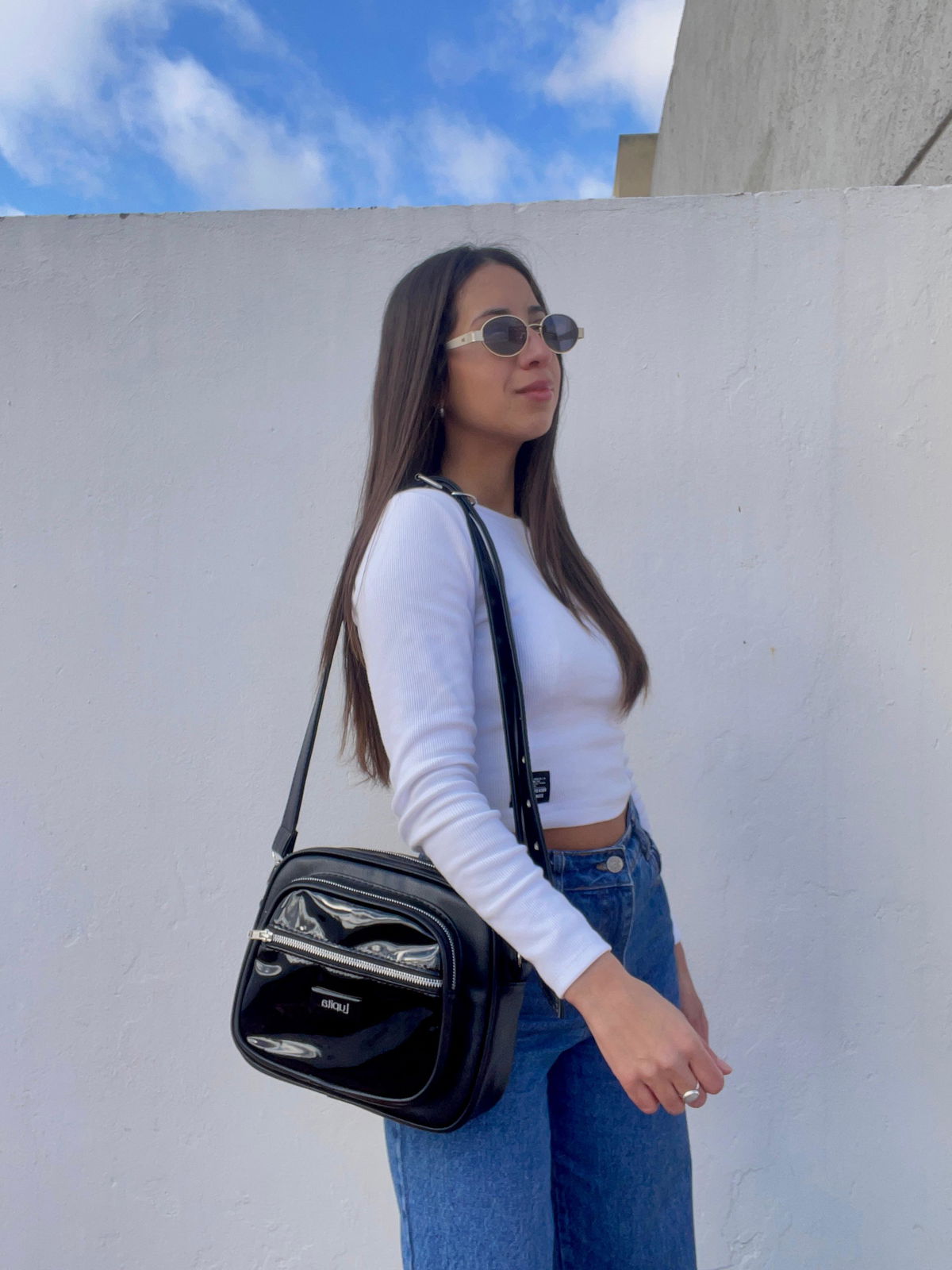 Diseñada para acompañarte todos los días, esta bandolera está confeccionada en eco cuero y forrada en su interior para mayor protección. Cuenta con un bolsillo frontal de acceso rápido y un compartimento principal con cierre.