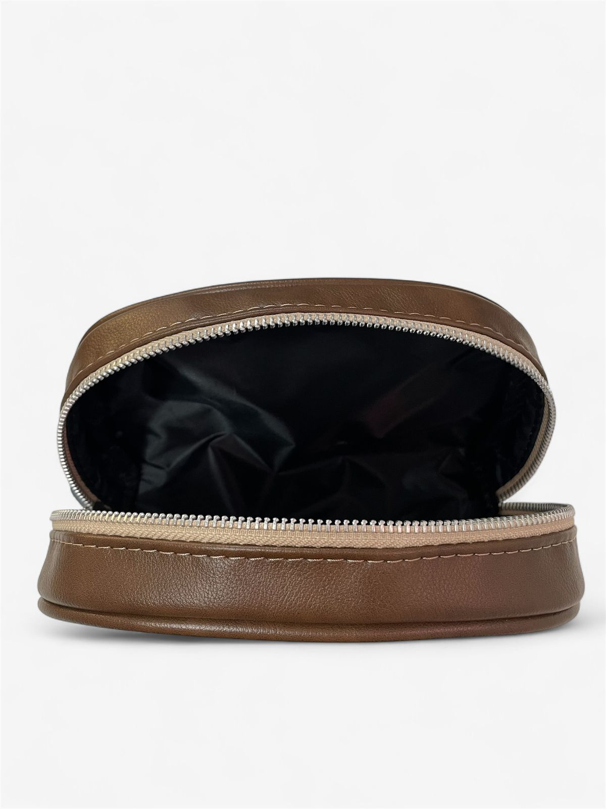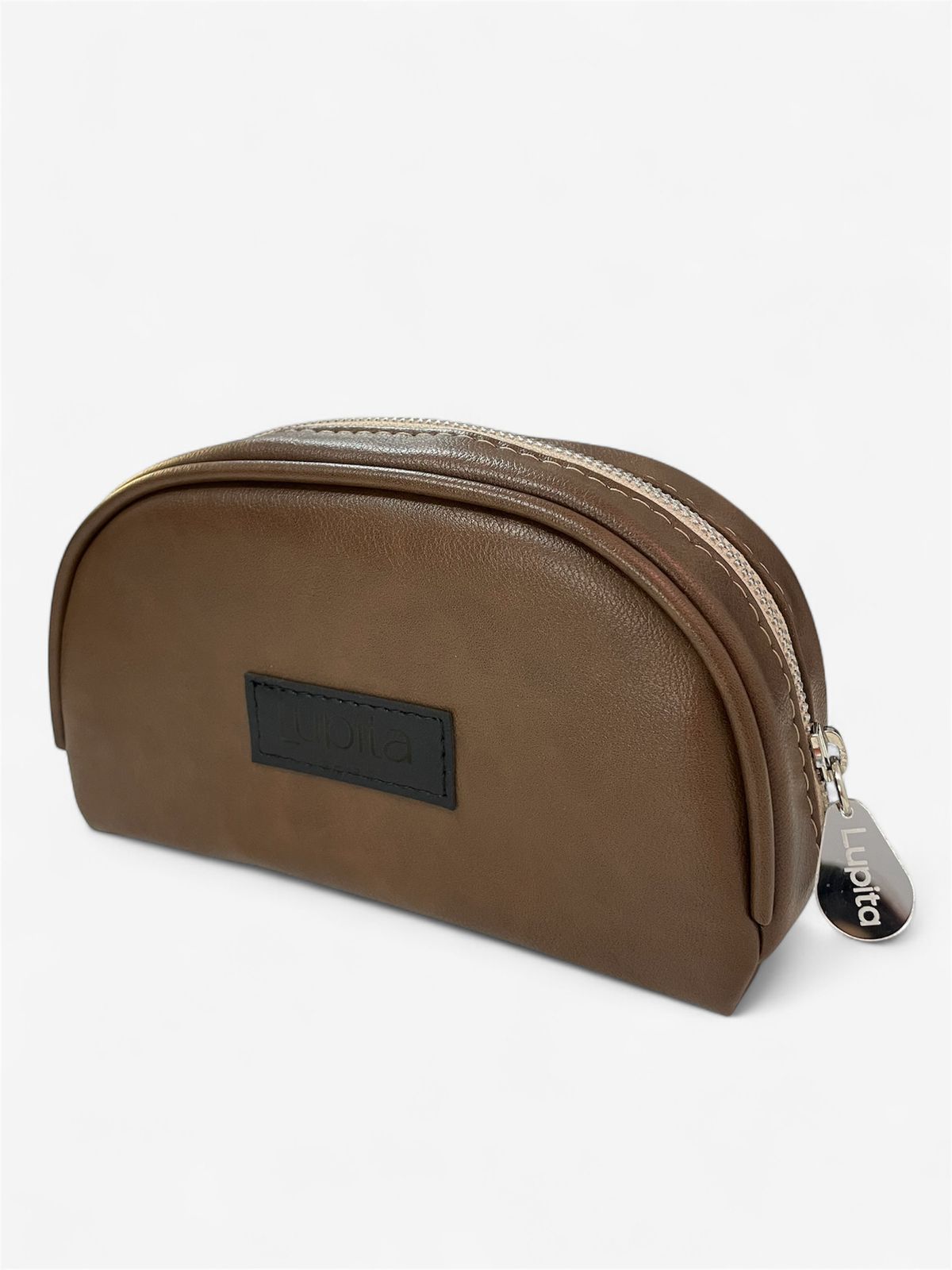 Confeccionado en cuero ecológico con forrería impermeable y cierre metálico Lupita.