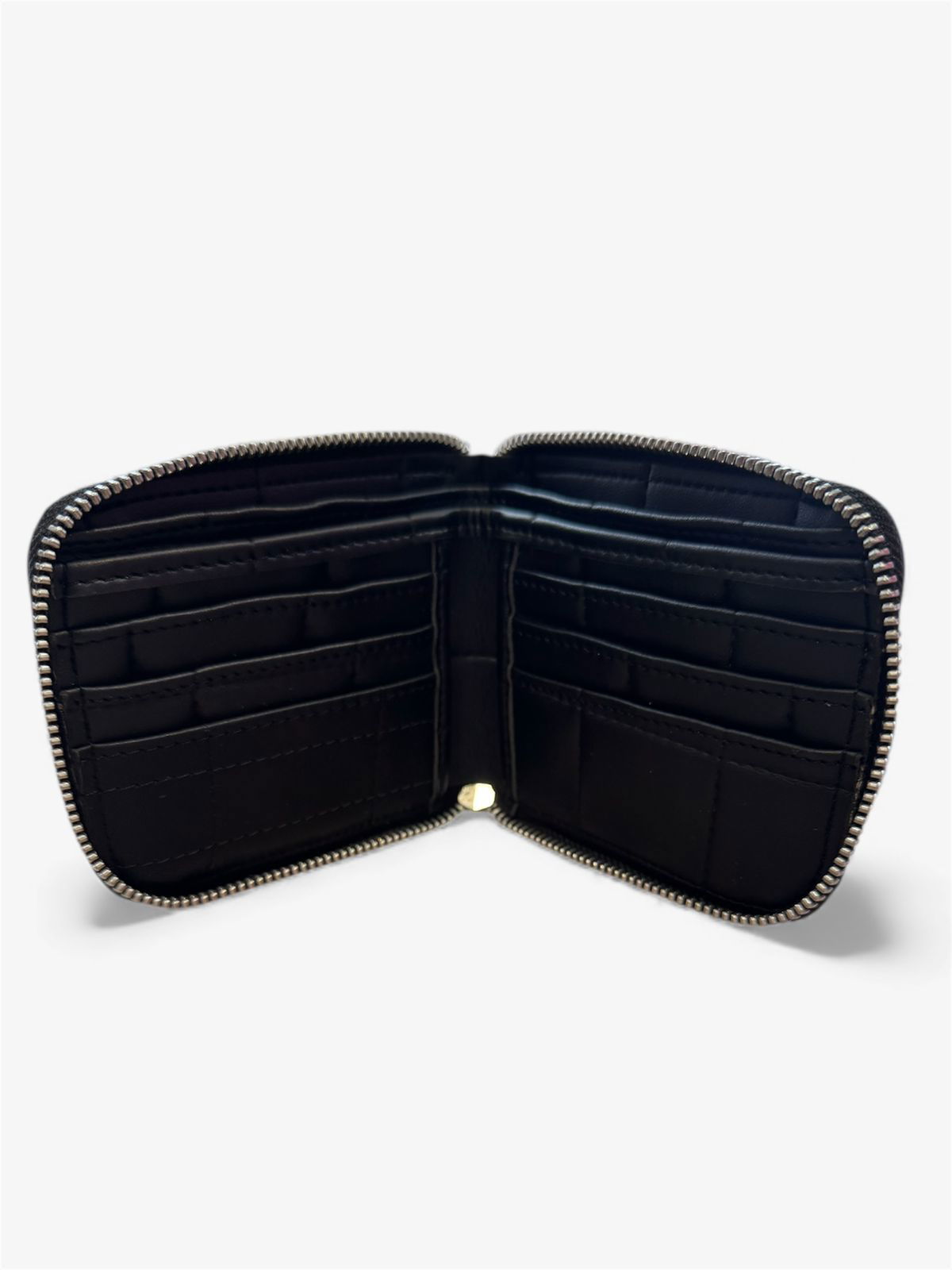 Tiene espacio para 6 tarjetas, 2 solapas para billetes y 2 bolsillos ocultos.