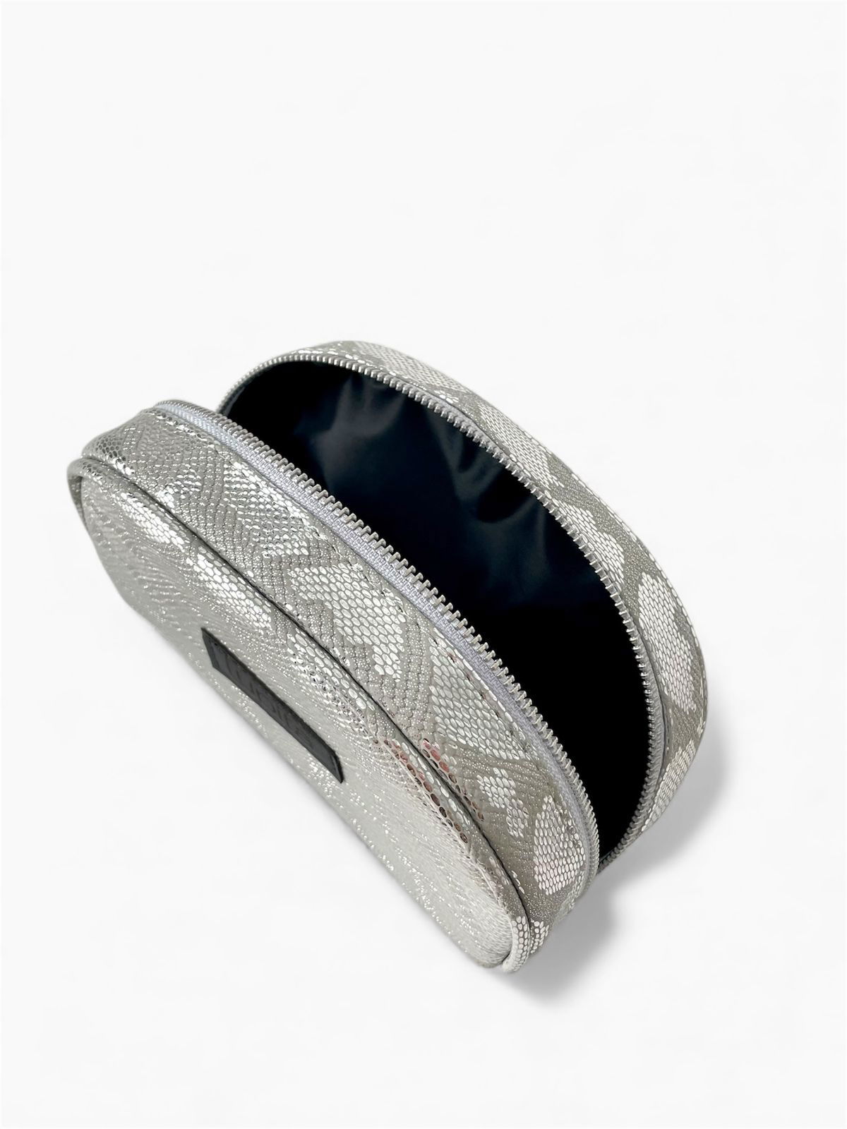 Confeccionado en cuero ecológico con forrería impermeable y cierre metálico Lupita.
