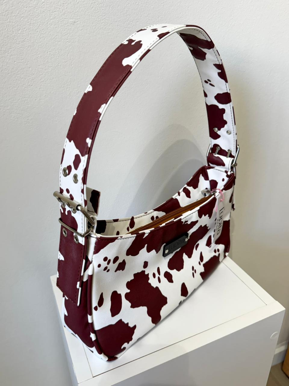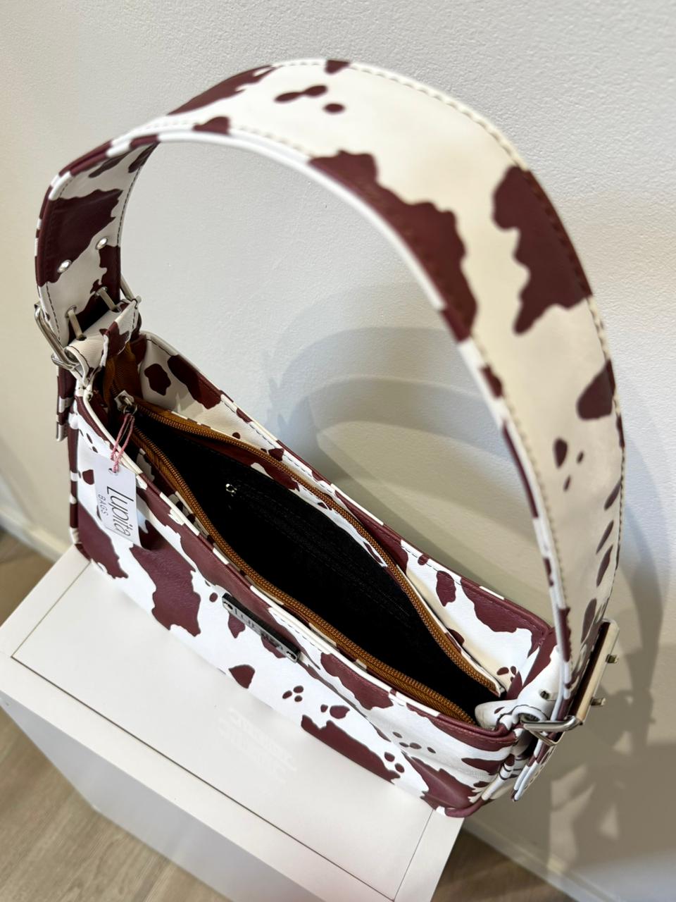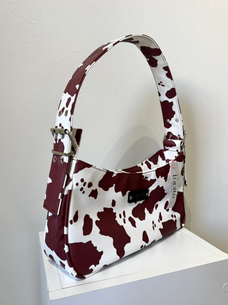Confeccionada en cuero ecologico, cuenta con correa regulable a ambos lados mediante hebillas metálicas, lo que te permite ajustarla a tu medida y llevarla cómodamente al hombro.