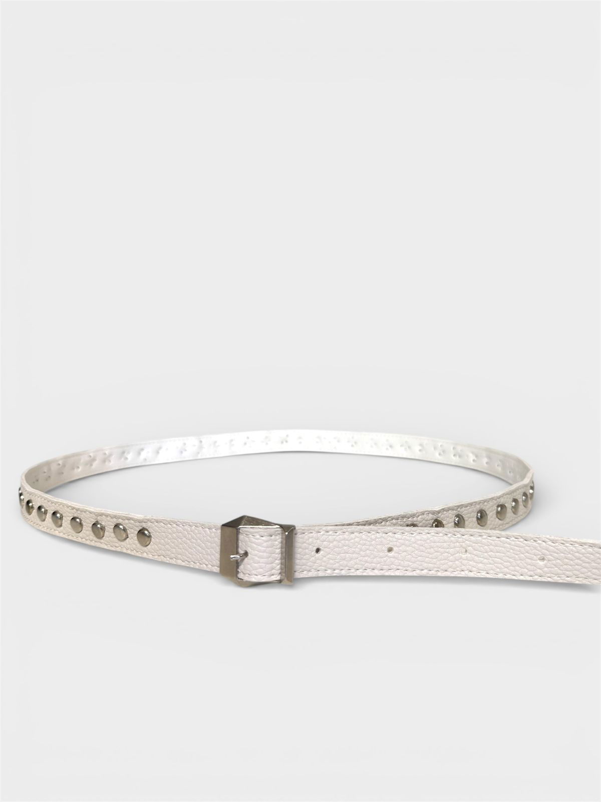 Cinto de cuero ecológico con tachas y hebilla regulable.